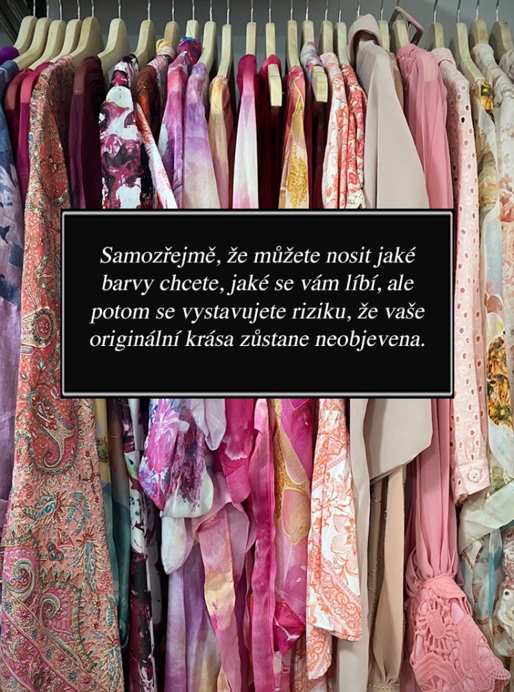 Rodíme se v určitém barevném, řekla bych „továrním“ nastavení. Jsme předurčeni k tomu, aby nám (podobně jako květinám a zvířatům), slušela jen určitá originální barevnost.