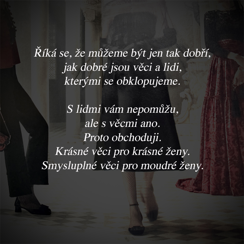 Konzultacemi, přednáškami, internetovým butikem, svými blogy a příspěvky učím ženy vidět kvalitu a krásu, věcí i sebe samých, a vymanit se tak z bludného kruhu nespokojenosti, nevědomosti a zbytečného nakupování, do něhož jsme již od mala společností manévrovány – a bohužel si to ani velmi často neuvědomujeme.